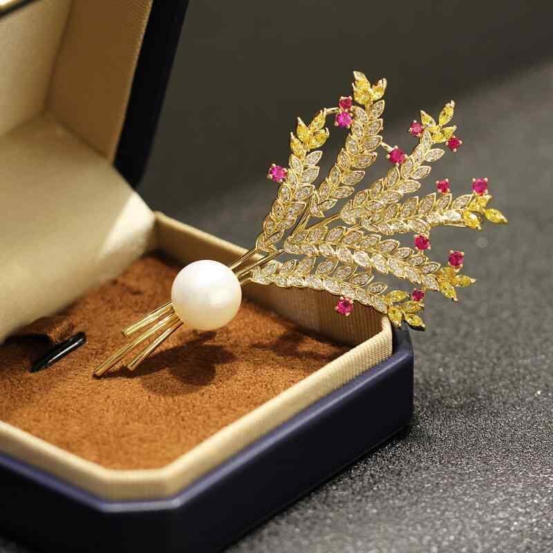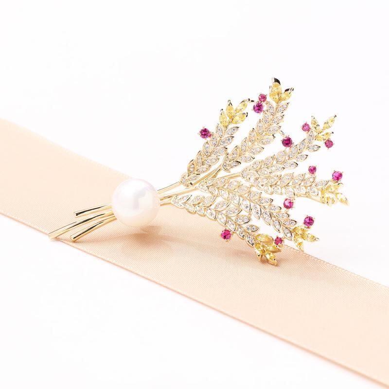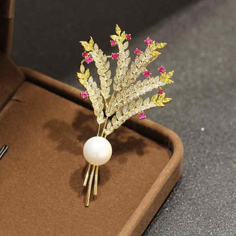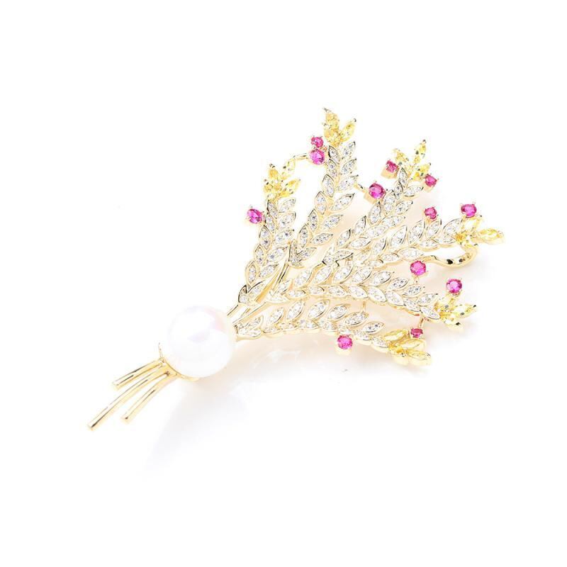 ブローチ レディース 女性用 個性的 高級感 ジルコニア マイクロセッティング 麦穂モチーフ 花束 フラワーデザイン シンプル エレガント 大胆 存在感 大きめ ゴールド 銅製 電気メッキ加工 ファッション フォーマル 通勤 オフィス