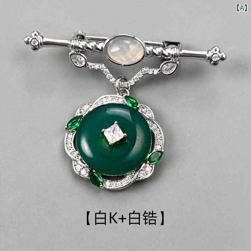 ブローチ 男女兼用 新中国風 レトロ エレガント 縁起物モチーフ オリジナルデザイン 高級感 グリーンメノウ 銅製 電気メッキ加工 幾何学模様 記念 装飾 民族風 個性的