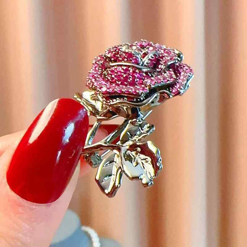 ブローチ レディース メンズ ユニセックス 高級感 レッドジルコニア ローズモチーフ スカーフ留め スーツ ラペルピン 装飾アクセサリー
