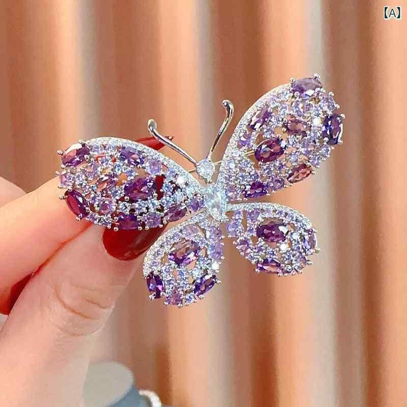 ブローチ 男女兼用 重厚感 マイクロパヴェ フルジルコニア 蝶 動物モチーフ エレガント 高級感 欧米風 大ぶり ピン アクセサリー 結婚式 パーティー フォーマル カジュアル ギフト