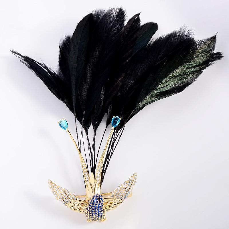 ブローチ レディース 秋冬 フェザー 小鳥 マイクロパヴェ ジルコニア 大ぶり エレガント 個性的なデザイン ピンブローチ ゴールド ファッション 通勤 オフィス 銅製