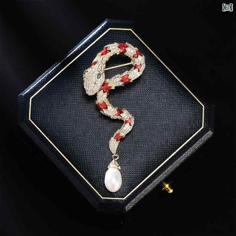 ブローチ 淡水パール レディース セレモニー フォーマル 入学式 おしゃれ 胸飾り 高級感 レトロ 蛇 へび スネーク 精巧 スーツ コート ジルコン アクセサリー