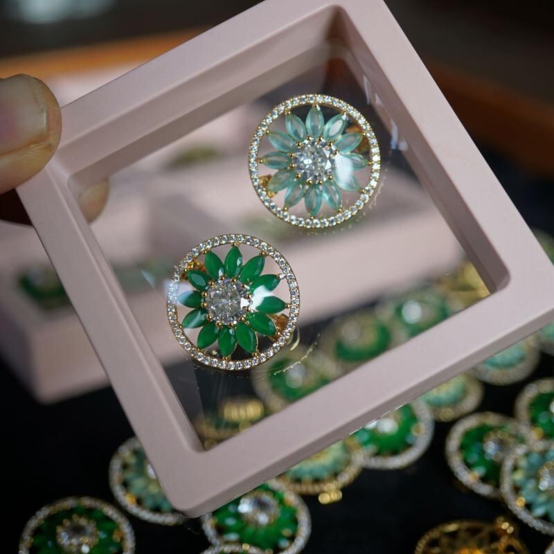 ブローチ レディース 女性用 フラワーモチーフ 花 ジルコニア 2色 深緑 浅緑 グリーン エレガント シンプル 上品 華やか 個性的 普段使い 通勤 秋冬
