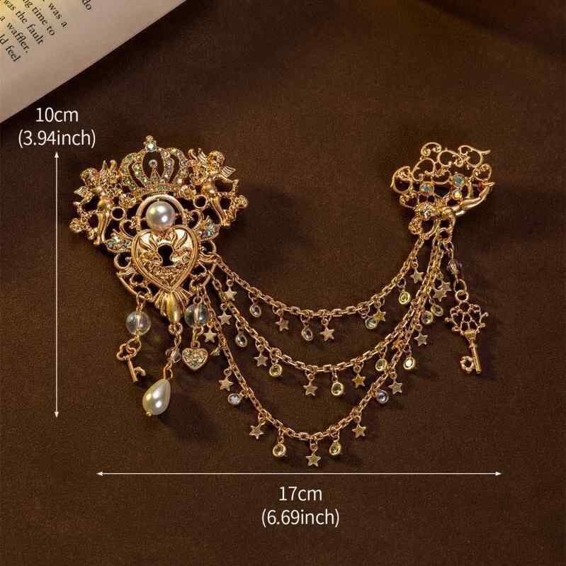 ブローチ レディース 個性的 ハートロック 天使 クラウン ジルコニア 多重チェーン タッセル 合金 アクセサリー