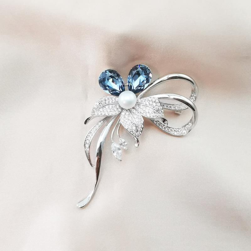ブローチ 淡水パール レディース セレモニー フォーマル 入学式 おしゃれ 胸飾り 高級感 クリスタル 花柄 女性用 スーツ コート アクセサリー