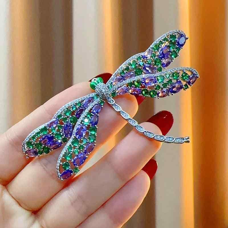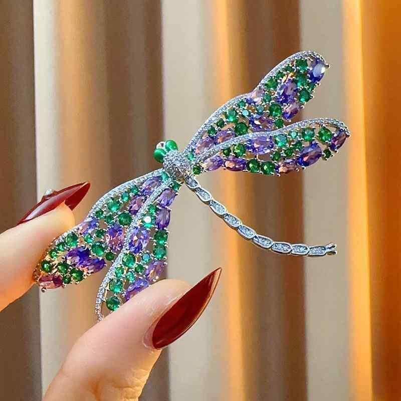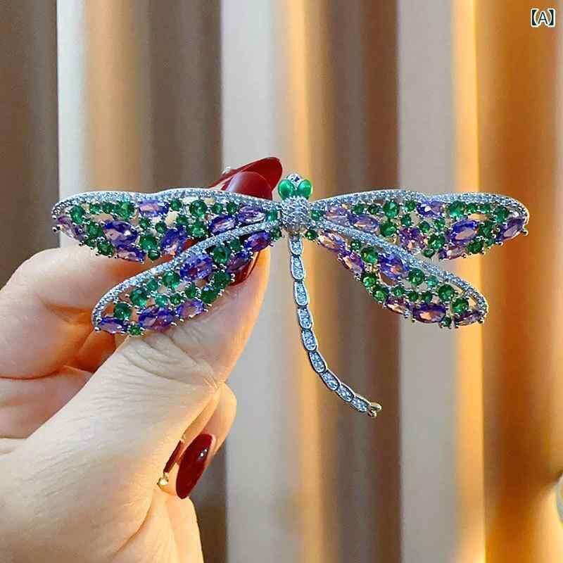 ブローチ ユニセックス トンボモチーフ カラフル マイクロセッティング ジルコニア 高級感 エレガント 上品 ジャケット スーツ コート フォーマル 普段使い