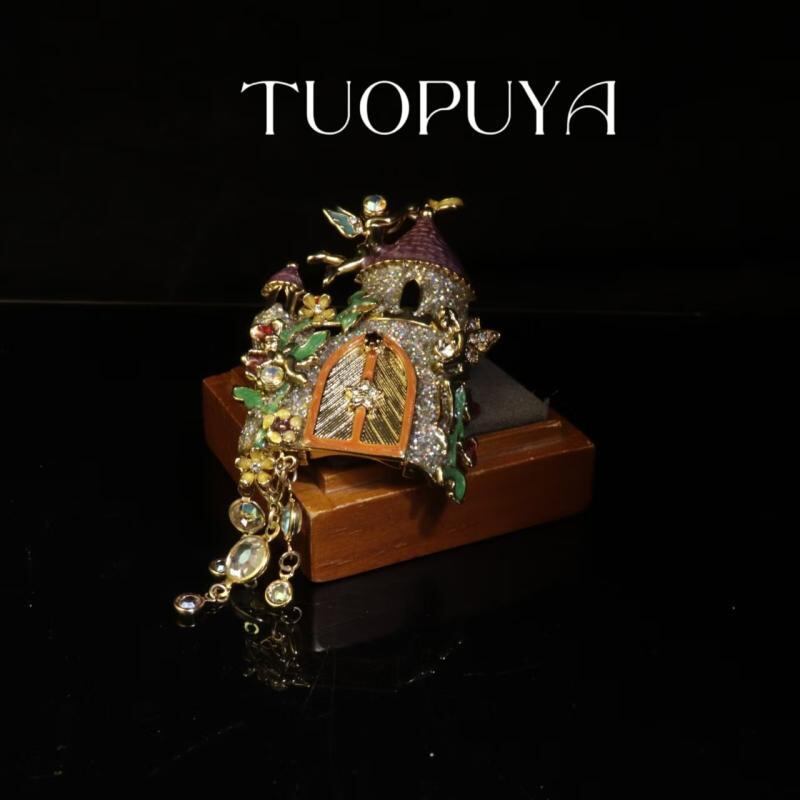 ブローチ レディース ヴィンテージ ファンタジー 童話の城 キャッスル タッセル ドロップ 精巧な作り ジルコニア 亜鉛合金製 カートゥーンモチーフ 上質 エレガント コート カジュアル フォーマル