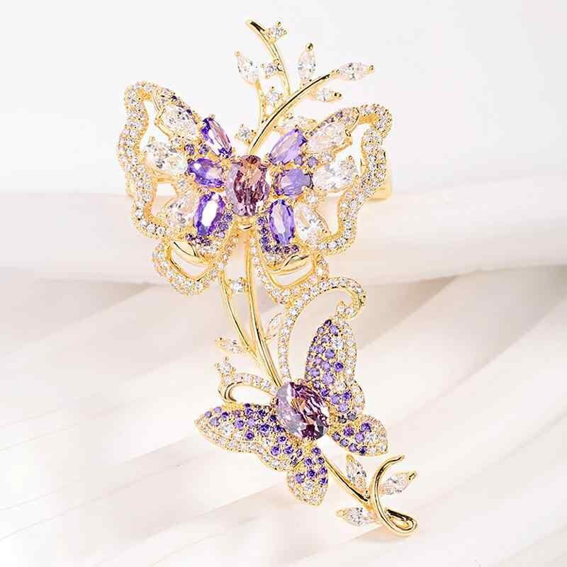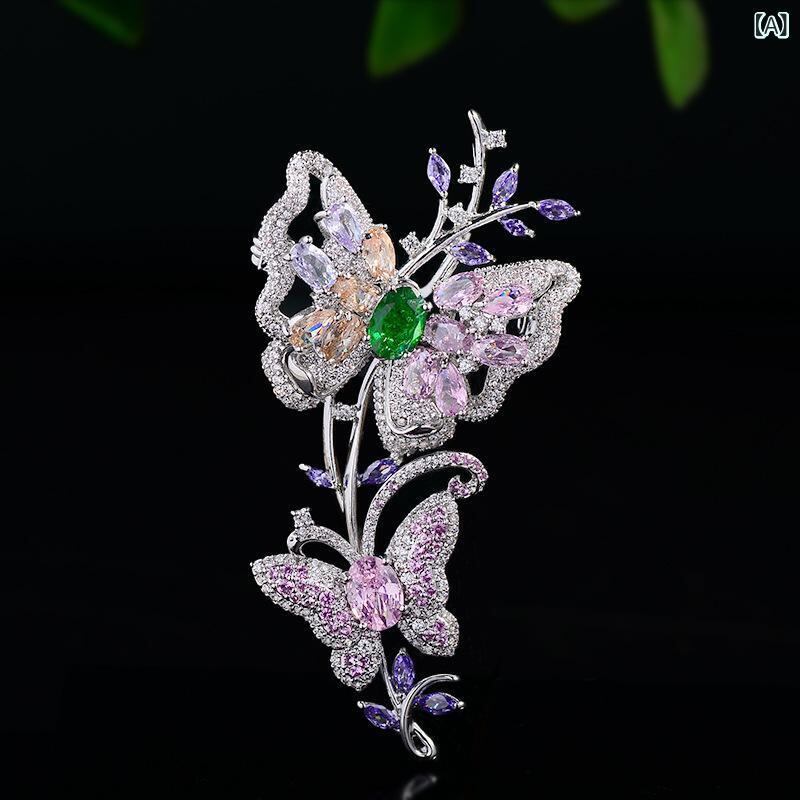 ブローチ レディース 高級感 エレガント 蝶 花 ジルコニア 銅製 電気メッキ加工 繊細デザイン フォーマル 通勤 オフィススタイル 装飾 シルバー ピンク イエロー パープル