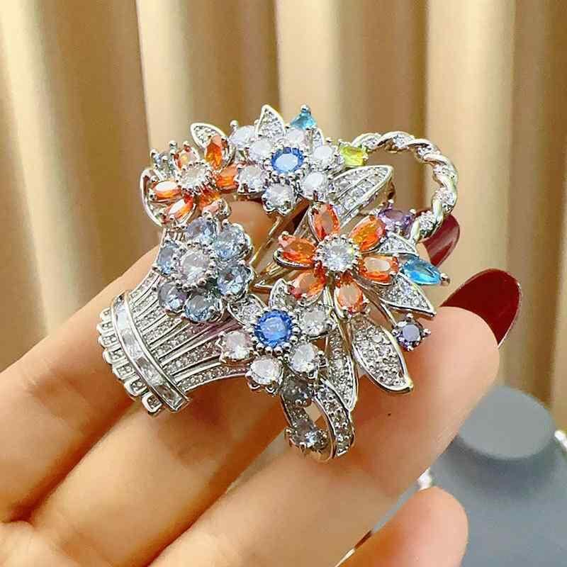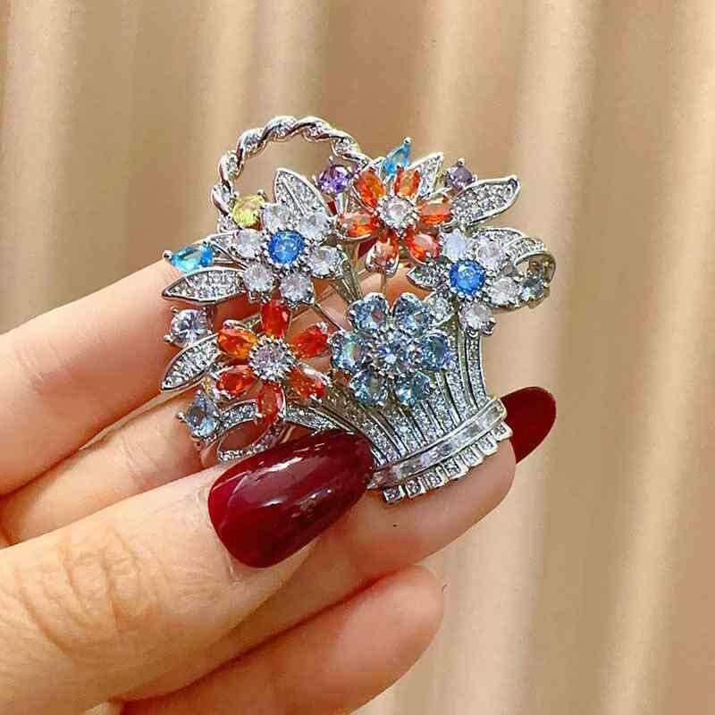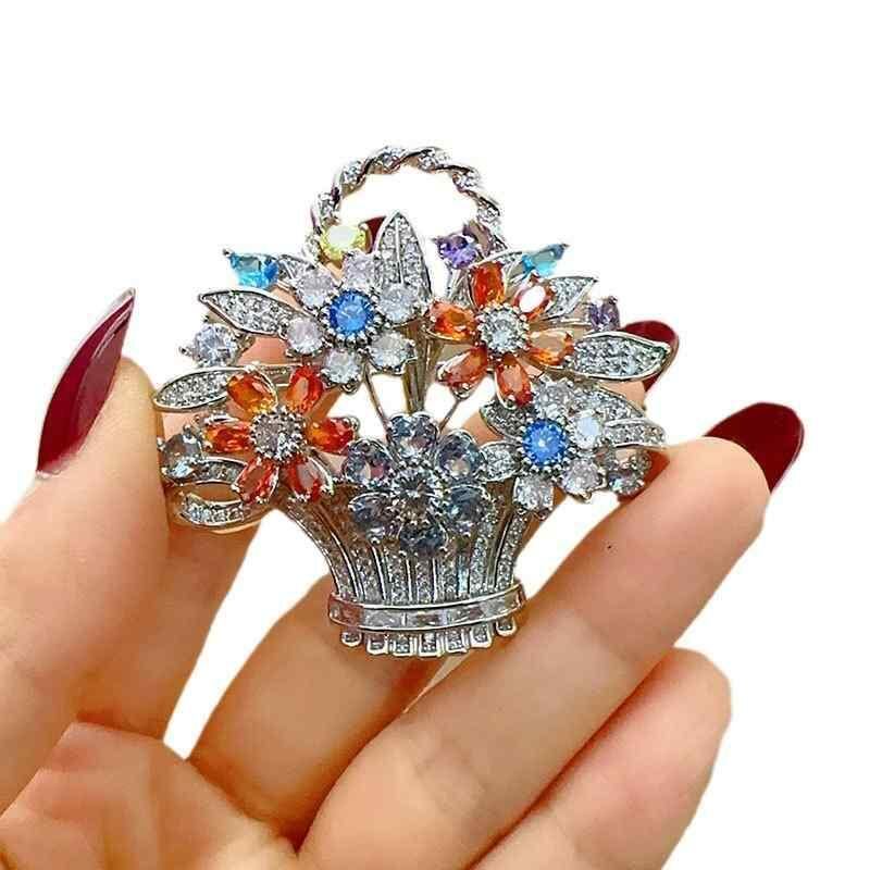 ブローチ レディース 個性的 花かご ジルコニア フラワー ブーケ 高級感 電気メッキ加工 韓国風 カジュアルスタイル 普段使い 結婚式 オケージョン ファッション小物 プレゼント