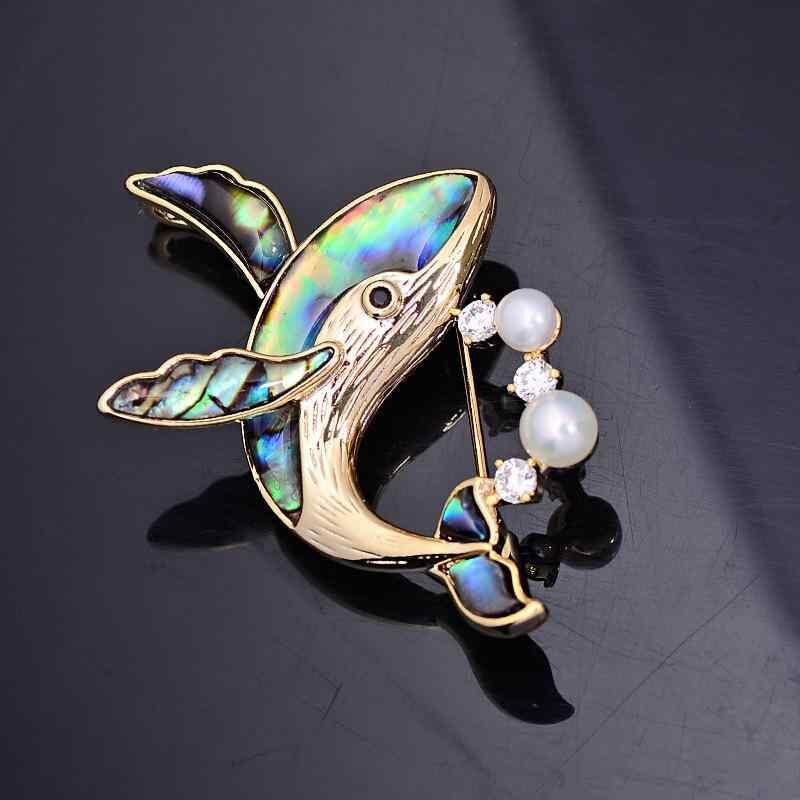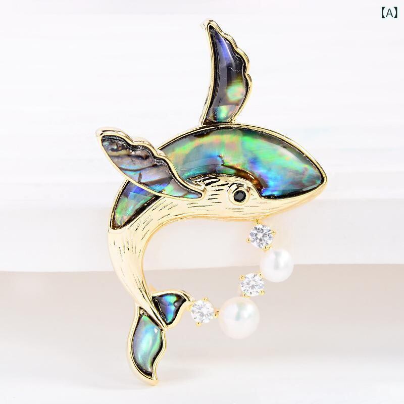 ブローチ レディース おしゃれ 普段使い クジラ 動物モチーフ 貝殻 淡水パール 個性的デザイン かわいい 精巧 ゴールド エレガント 銅 ジルコニア 電気メッキ加工
