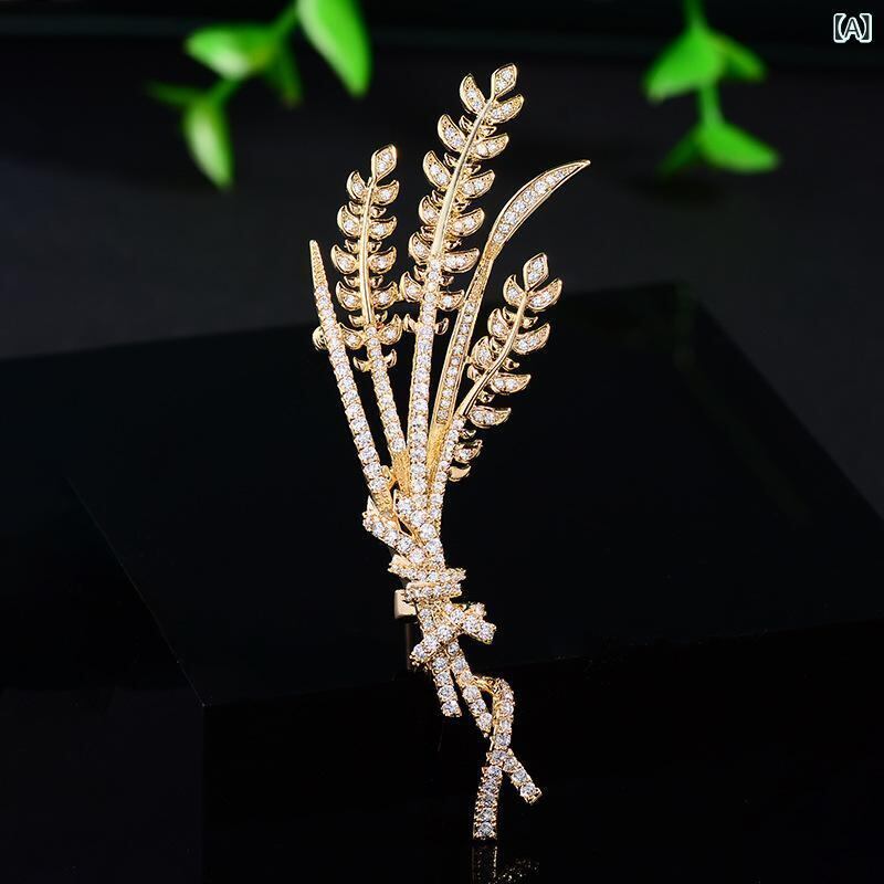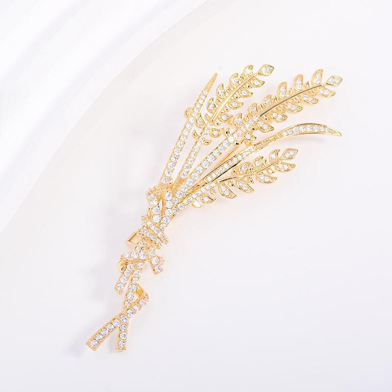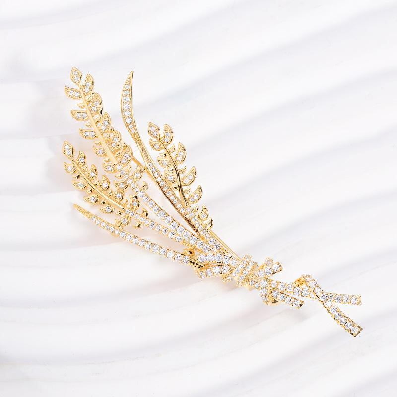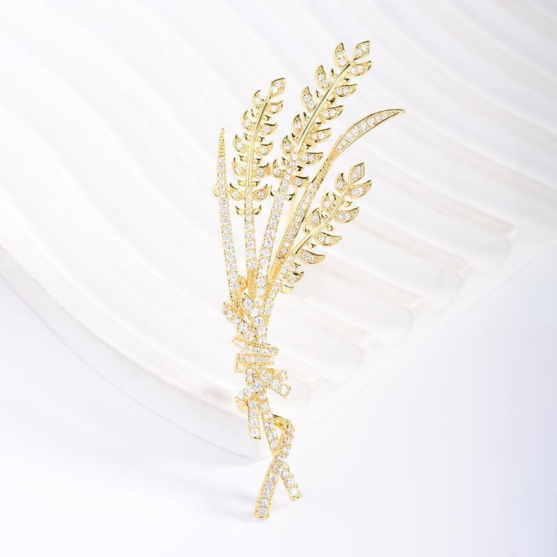 ・種類: ブローチ・対象: レディース・スタイル: OLファッション、通勤・デザイン要素: 植物モチーフ、麦の穂・素材: 銅、キュービックジルコニア・加工: 電鍍・カラー: ゴールド・用途: 装飾、贈答用
