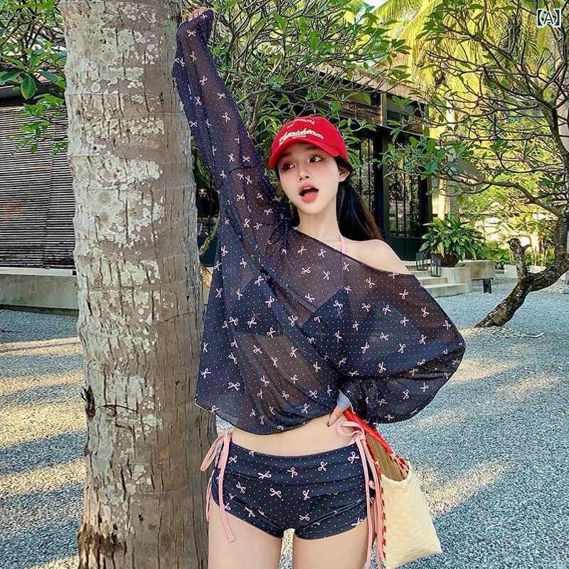 水着 レディース 長袖 ビキニ 4点セット UVカット 着痩せ効果 高級感 純欲系 甘め プール 温泉 マリンスポーツ スイミング 春夏 カップ付き ワイヤーなし ブラック ピンク