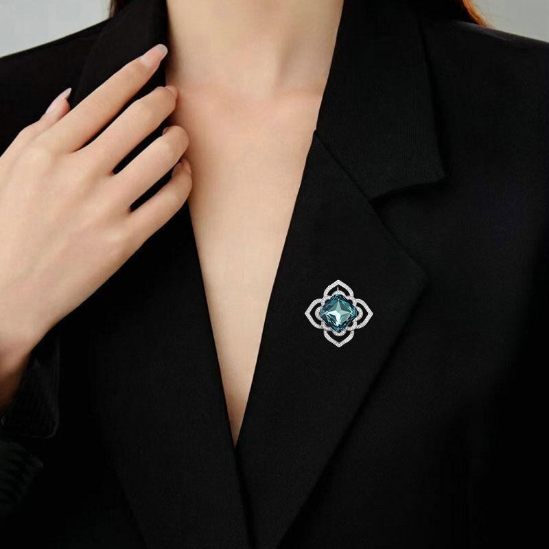 ブローチ レディース 上品 エレガント 高級感 開運花柄 青水晶 ジルコニア装飾 銅製 秋冬 スーツ コート ジャケット アウター フォーマル 服飾小物