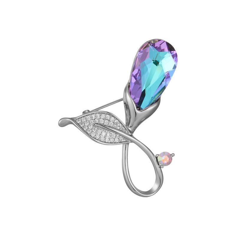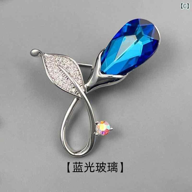 ブローチ レディース 秋冬 クリスタル フラワー チューリップ マイクロパヴェ 高級感 繊細 上品 エレガント ピンブローチ コサージュ アクセサリー 普段使い フォーマル パーティー お出かけ