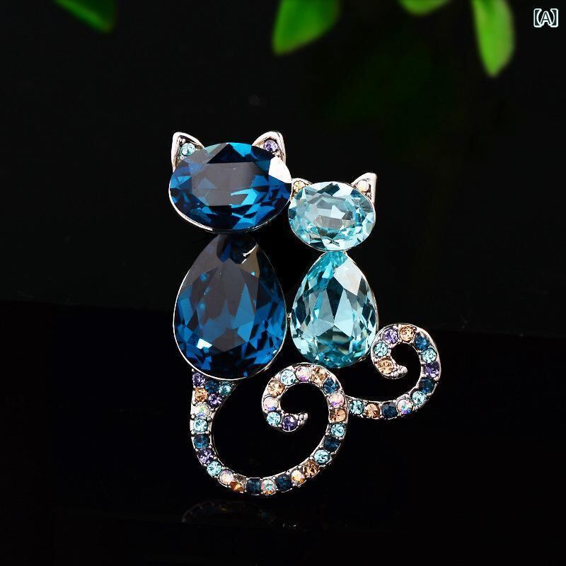 ブローチ レディース 韓国風 ファッション かわいい 猫モチーフ 洗練デザイン 個性的 エレガント 高級感 合金製 電気メッキ加工 ブルー ピンブローチ アクセサリー 普段使い パーティー フォーマルシーン ギフト