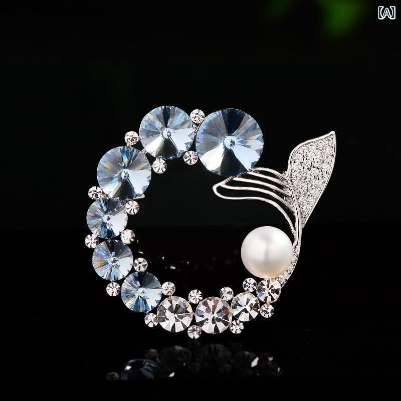 ブローチ レディース 女性用 高級感 マーメイドテール 魚尾 淡水パール 真珠 ジルコニア クリスタル エレガント 華やか デザイン ピンブローチ フォーマル パーティー おしゃれ 結婚式 アクセサリー