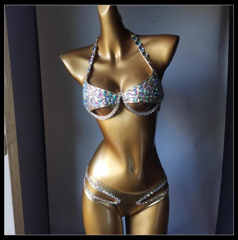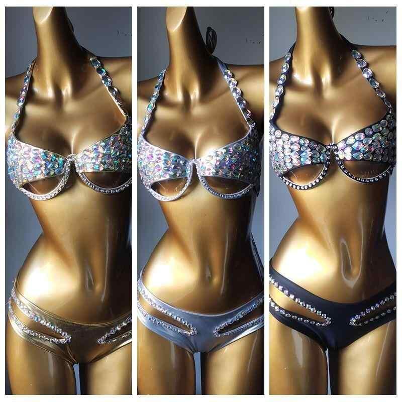 ビキニ レディース セパレート ナイトクラブ パーティー セクシー 高級感 無地 高伸縮 ノンワイヤー パッドなし ナイロン 三角 欧米風 ピンク ゴールド シルバー ブラック