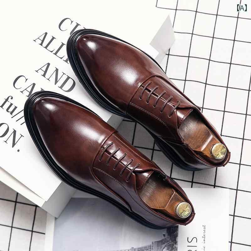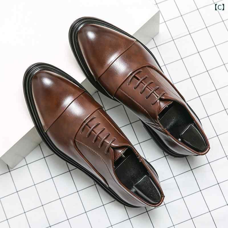 紳士靴 革靴 メンズ ビジネス カジュアル フォーマル 英国風 ラウンドトゥ レースアップ フラットヒール 通勤 オフィス 結婚式 新郎 ナイトクラブ PUレザー ゴム底 マイクロファイバー裏地 切り替え 黒 茶
