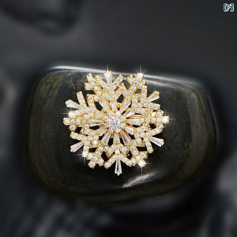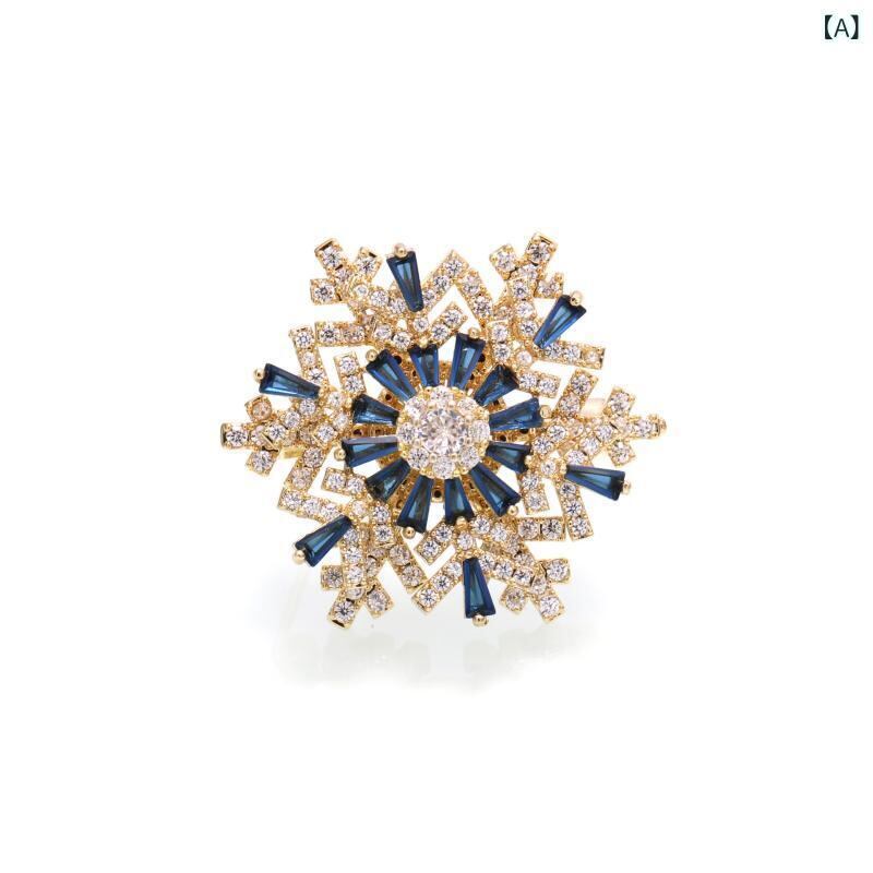 ブローチ レディース 雪の結晶 ジルコニア 回転式 立体 高級感 エレガント 上品 韓国風 スーツ ジャケット コート ワンピース ドレス フォーマル パーティー コサージュ
