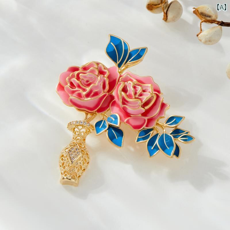 ブローチ レディース 牡丹 花 高級感 エレガント レトロ アンティーク調 七宝エナメル 銅製 中華風 モダン 花瓶モチーフ フォーマル カジュアル 普段使い