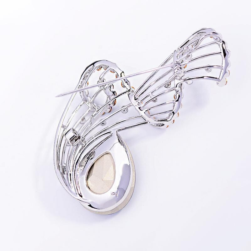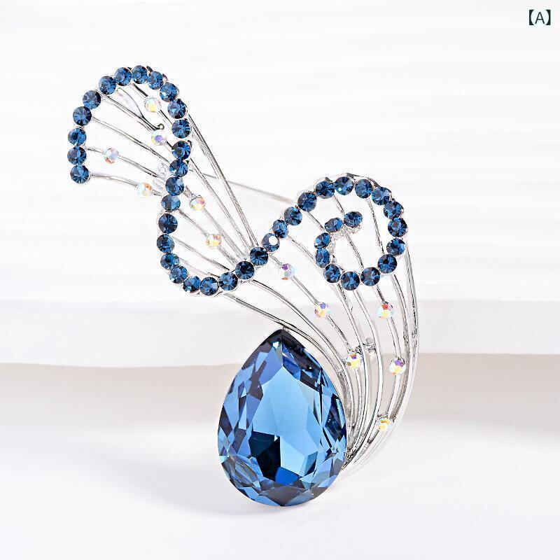 ブローチ レディース 波モチーフ ジルコニア 銅製 電気メッキ加工 軽やか 高級感 エレガント 優雅 通勤 オフィス 普段使い ブルー イエロー