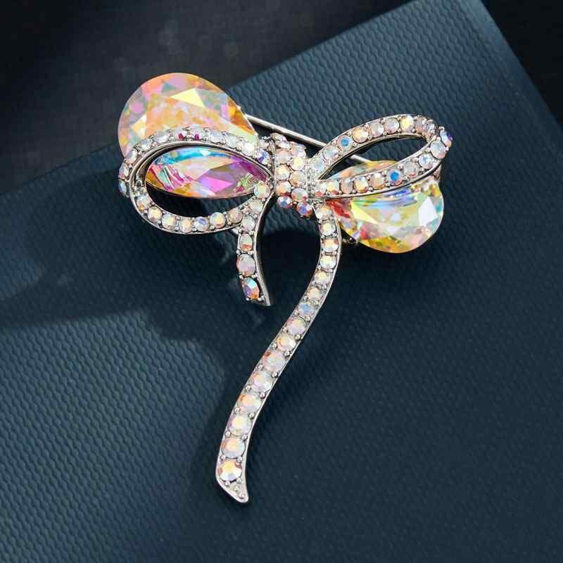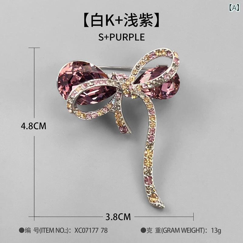 ブローチ レディース 女性用 クリスタル リボンモチーフ 高級感 ライトラグジュアリー エレガント レトロ 上品 銅製 精巧デザイン フォーマル 普段使い パーティー 結婚式 コサージュ ピンバッジ