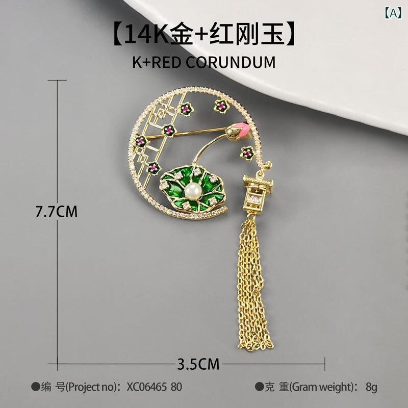 ブローチ レディース 新中華風 宮廷風 レトロ エレガント 蓮の葉 蓮の花 タッセル エナメル加工 銅製 漢服 チャイナドレス 和装小物 フォーマル 装飾品