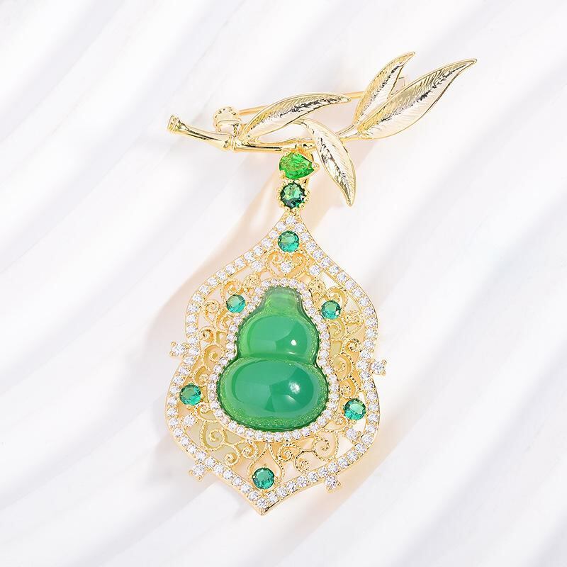 ブローチ レディース モダンチャイニーズスタイル 精巧なデザイン 竹の葉 瓢箪 ドロップ ゴールド 高級感 ジルコニア マイクロパヴェ 電気メッキ チャイナドレス スーツ フォーマル アクセサリー 春夏