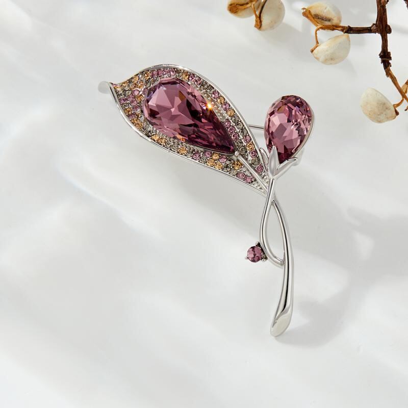 ブローチ レディース カラー 花 クリスタル 銅製 電気メッキ加工 豪華 ライトラグジュアリー 高級感 エレガント 上品 オシャレ 装飾