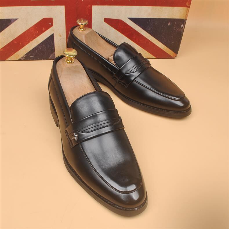 ビジネスシューズ メンズ シークレットシューズ ポインテッドトゥ スリッポン ローファー 本革 牛革 通気性 蒸れない 軽量 快適 韓国風 英国風 ビジネス カジュアル 通勤 普段使い 紳士靴 ブラック