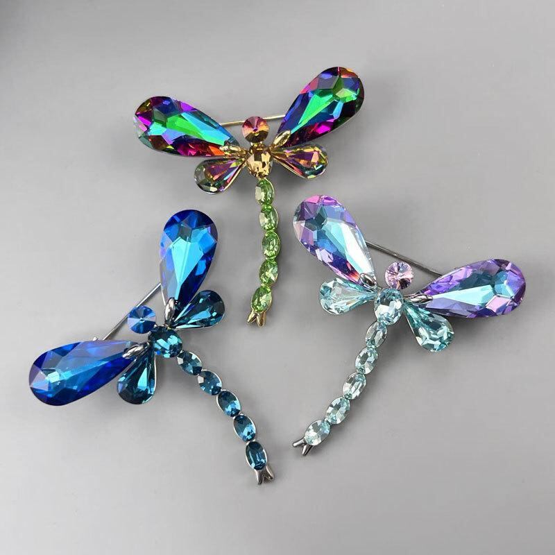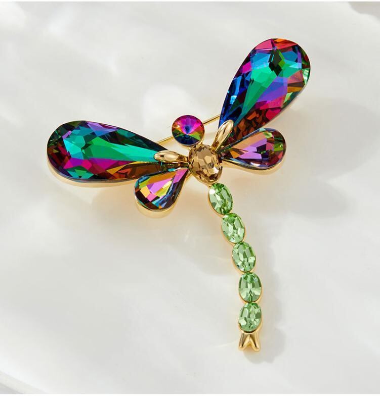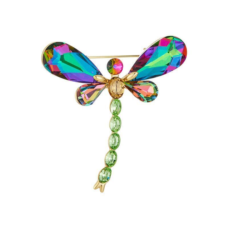 ブローチ レディース ライトラグジュアリー クリスタル トンボ 昆虫モチーフ 高級感 カラフル 銅製 電気メッキ加工 ファッション おしゃれ スーツジャケット コート アクセサリー