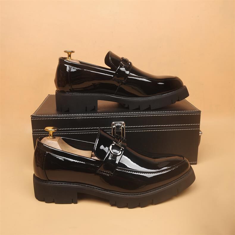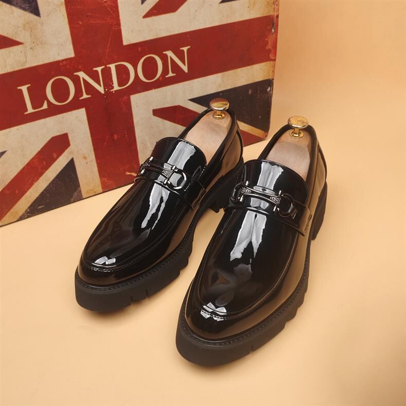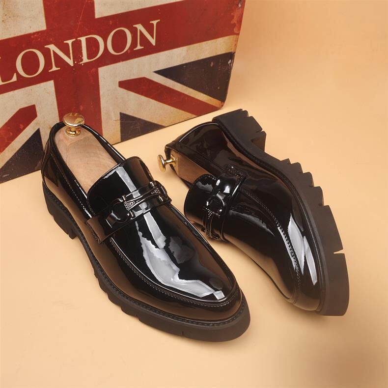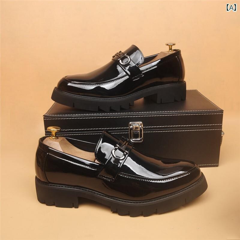 紳士靴 ビジネスシューズ メンズ スリッポン シークレットヒール 厚底 光沢 エナメル フォーマル ビジネス カジュアル 英国風 人工皮革 ブラック