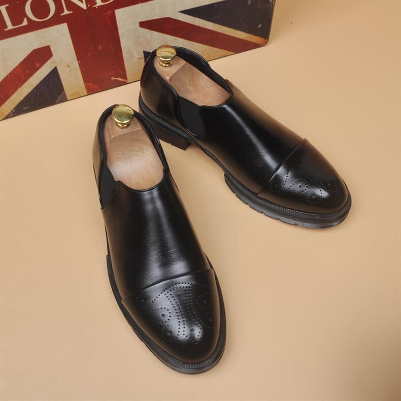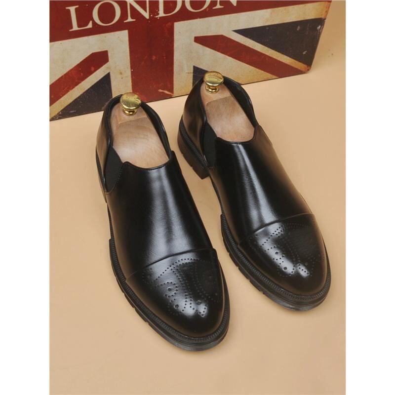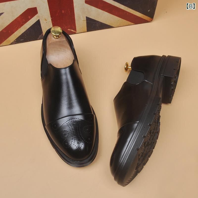 紳士靴 革靴 メンズ 本革 ビジネス カジュアル ブローグ シークレットヒール スリッポン 厚底 ブラウン レトロ 韓国風 無地 通勤 オフィス 普段使い