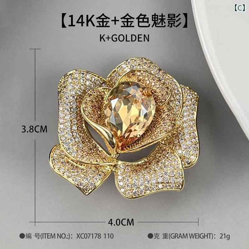 ブローチ レディース エレガント クリスタル カメリア フラワー ライトラグジュアリー 高級感 マイクロセッティング 総ジルコニア 繊細 春夏