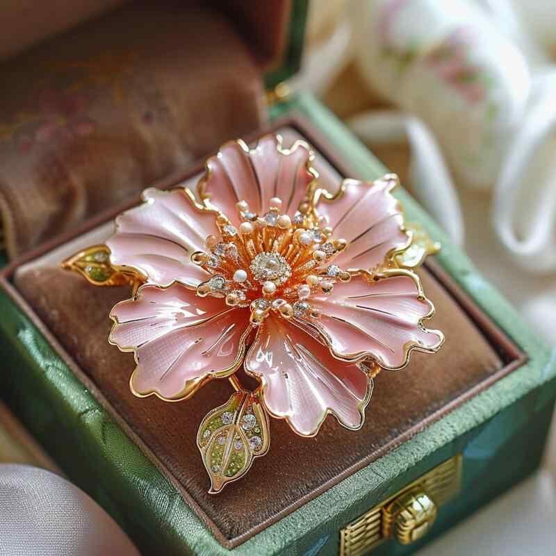 ブローチ レディース 女性用 石竹花 フラワーモチーフ 七宝焼 豪華 ラインストーン ジルコニア 高級感 銅製 電気メッキ加工 オリジナルデザイン ジュエリー アクセサリー