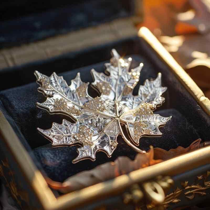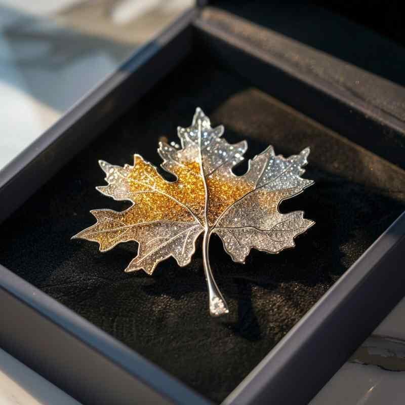 ブローチ レディース 女性用 モミジ ツートンカラー 銅製 電気メッキ加工 オリジナルデザイン 植物モチーフ 秋冬 高級感