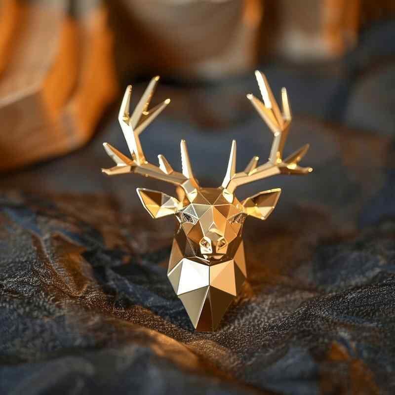 ブローチ レディース 鹿 ヘラジカ アートモチーフ 鹿の角 マットゴールド 銅製 電気メッキ加工 高級感 アニマルアクセサリー オリジナルデザイン