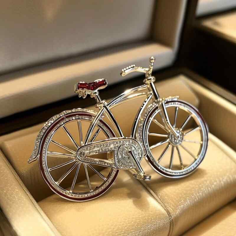 ブローチ レディース 女性用 自転車モチーフ ヴィンテージ風 ジルコニア ラインストーン 高級感 銅製 電気メッキ加工 オリジナルデザイン ギフト プレゼント 装飾品 アクセサリー ファッション小物
