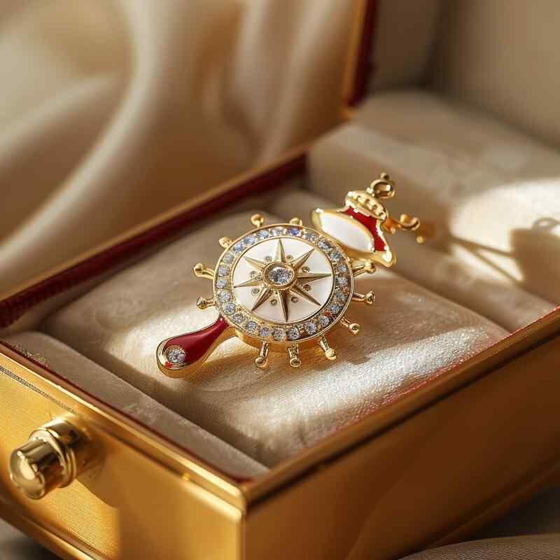 ブローチ レディース 船舵 舵モチーフ レトロ アンティーク調 上品 銅製 電気メッキ加工 アンティークゴールドカラー ジャケット スーツ コート ピンバッジ アクセント 高級感 エレガント カジュアル フォーマル