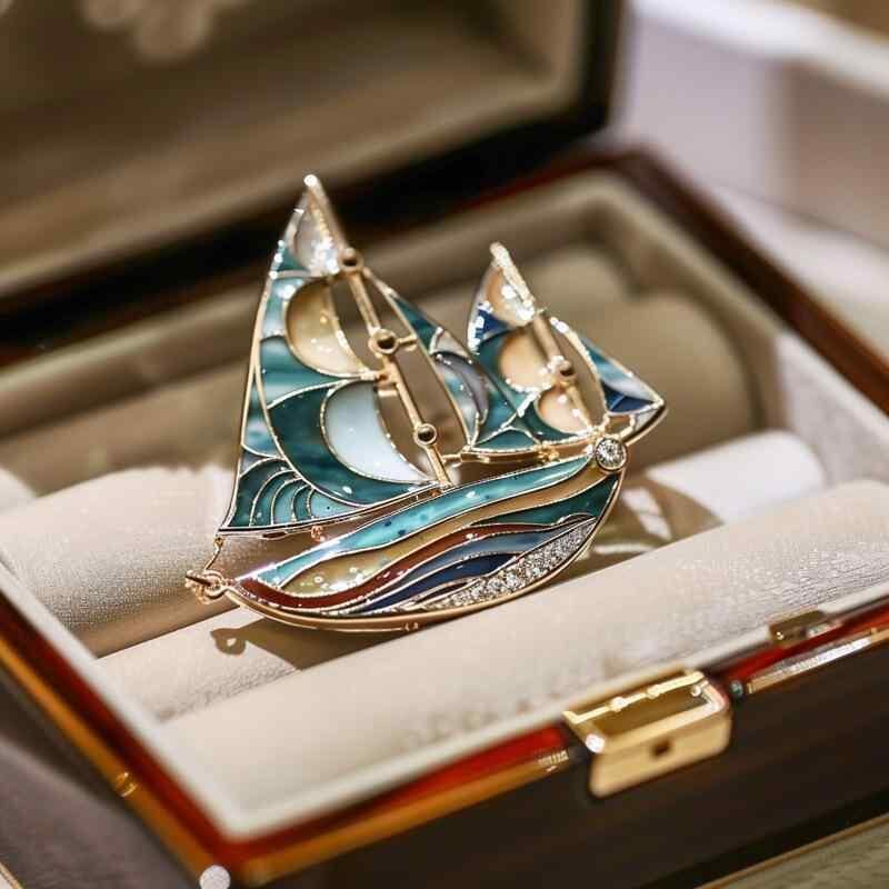 ブローチ ピン 男女兼用 欧風 レトロ 帆船 デザイン 高級感 銅製 エナメル加工 オリジナルデザイン ファッション小物 アクセサリー 装飾 ギフト 記念 贈り物