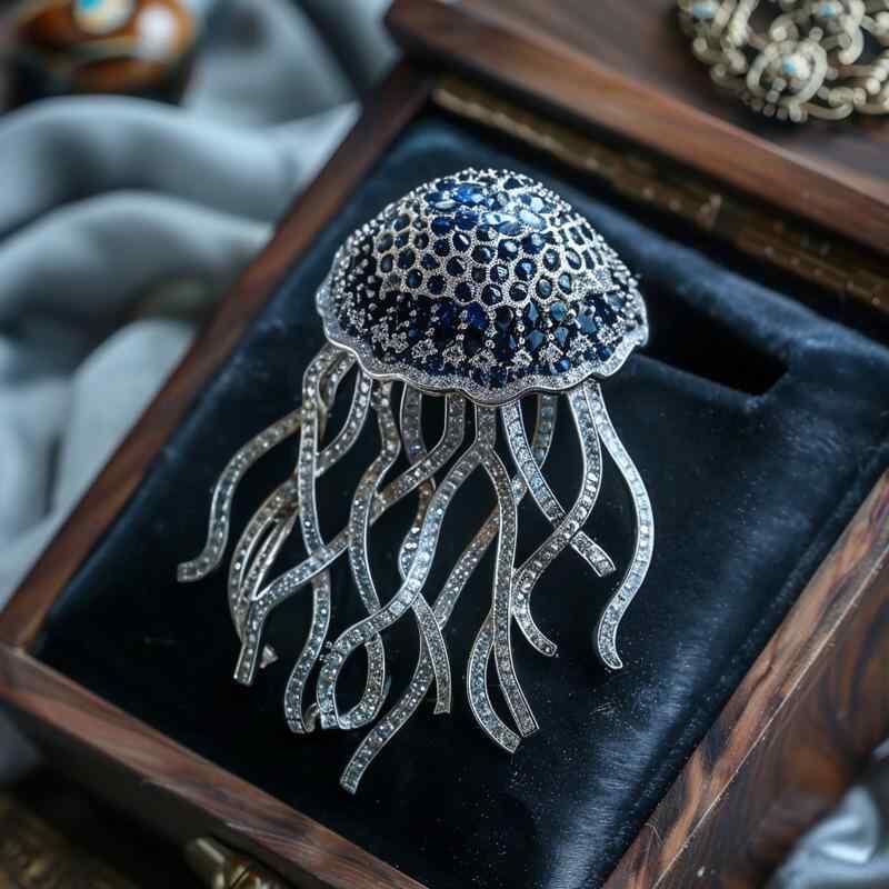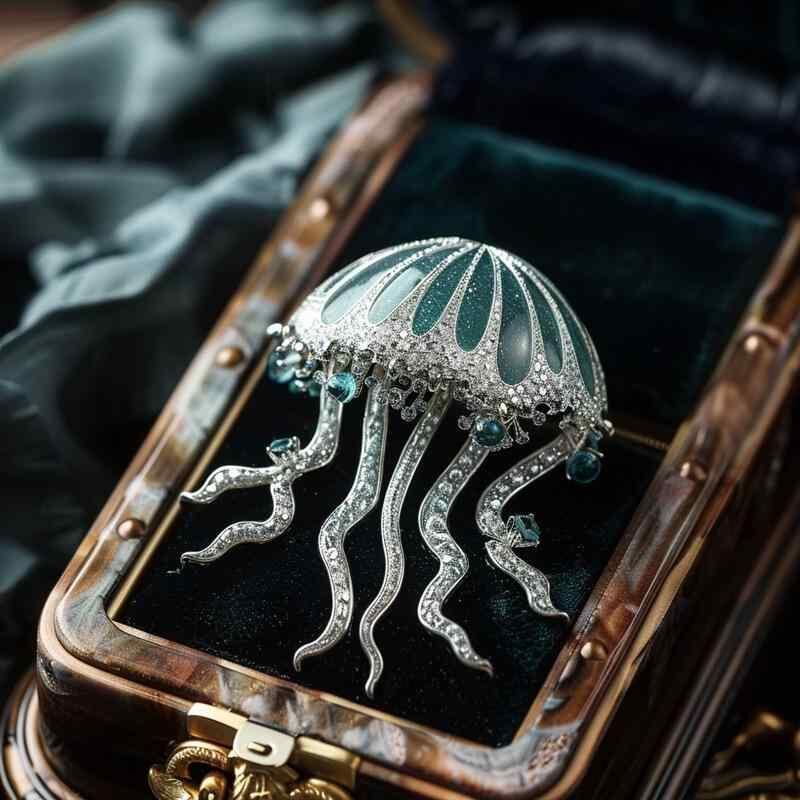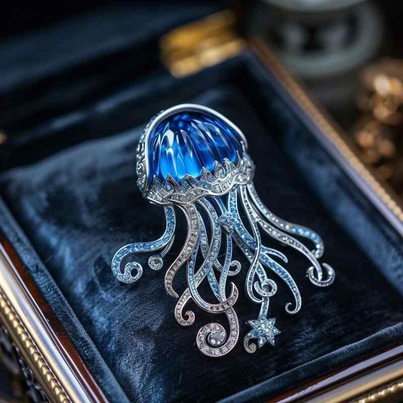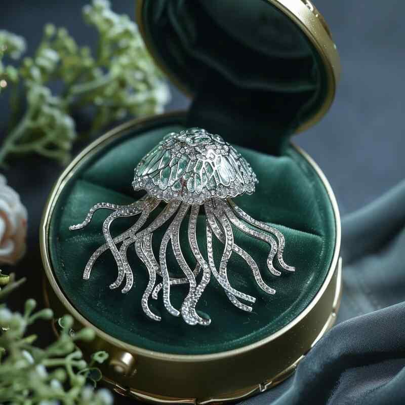 ブローチ レディース 海洋系 深海生物 クラゲモチーフ エナメル装飾 スーツスタイル オフィス カジュアル 銅製 電気メッキ加工 高級感 オリジナルデザイン ギフト プレゼント 装飾品
