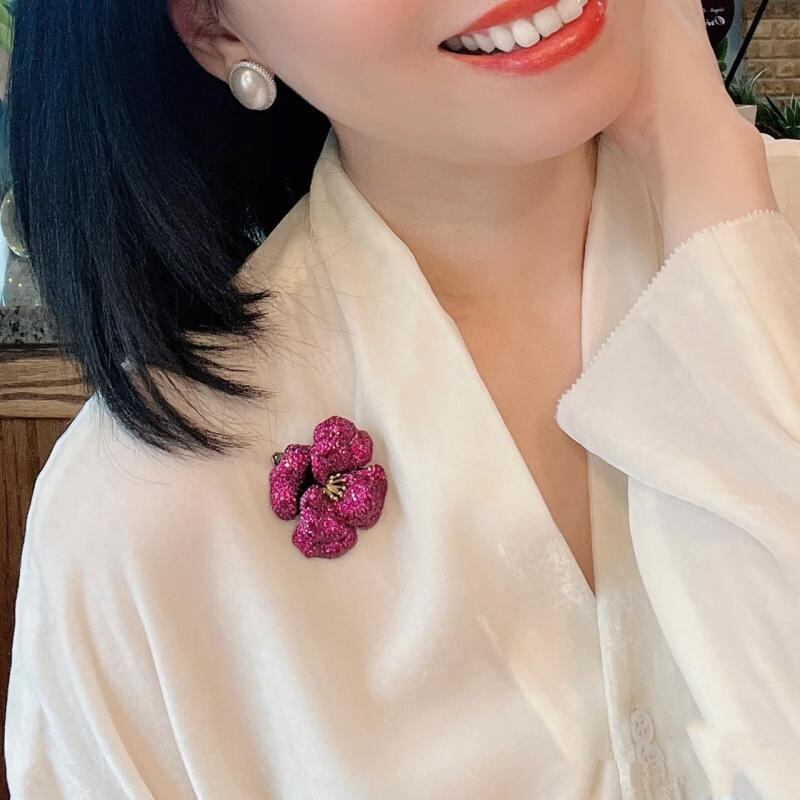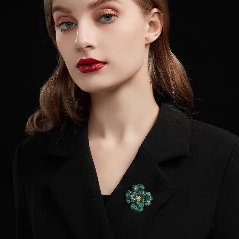 ブローチ レディース 牡丹 フラワーモチーフ ドロップタイプ 高級感 エレガント 上品 シンプル ラインストーン ゴールドカラー ピンク グリーン 結婚式 フォーマル パーティー デイリー アクセサリー
