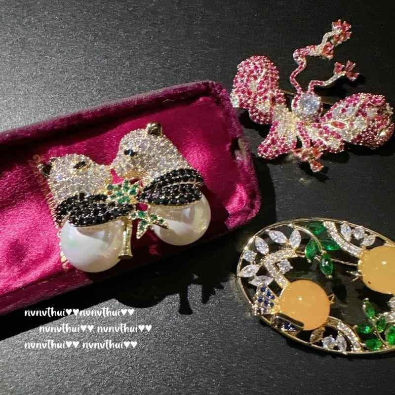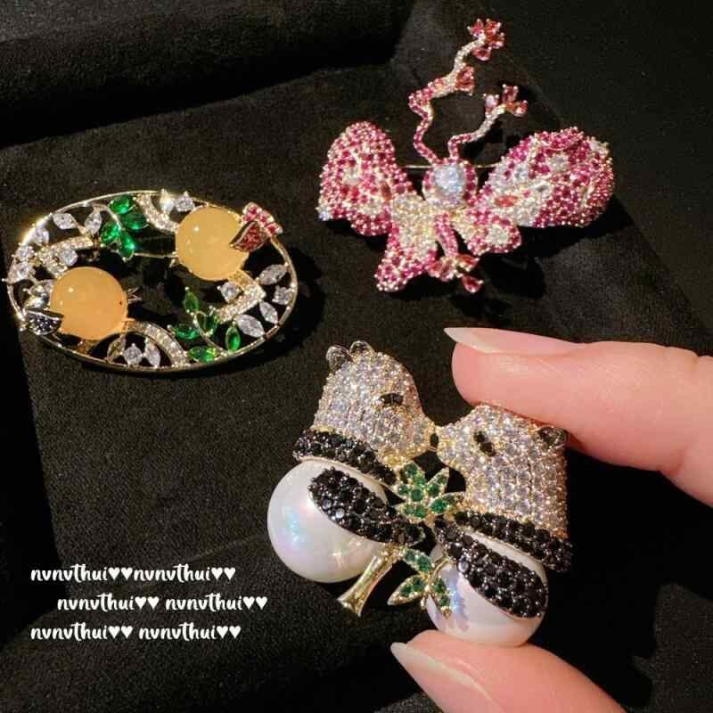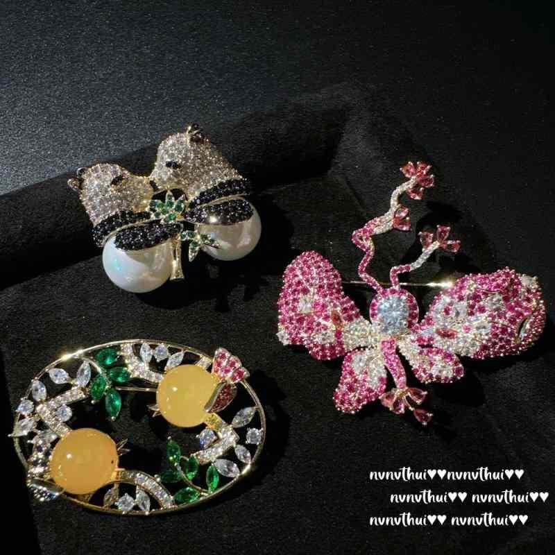 ブローチ レディース 蝶々 パンダ 竹モチーフ ジルコニア 装飾 アクセサリー 新チャイニーズスタイル レトロモダン エレガント コサージュ 華やか 高見え プレゼント