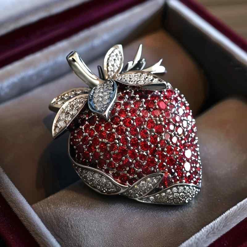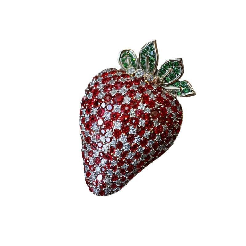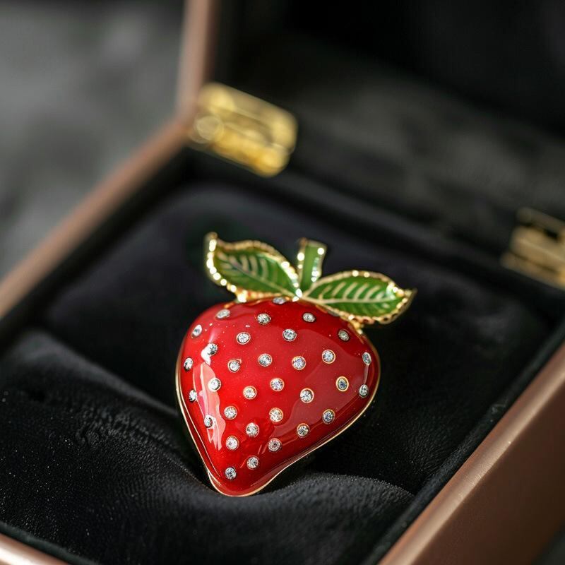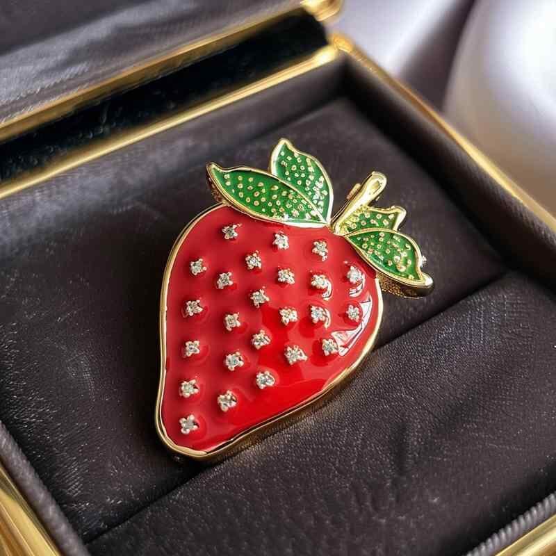ブローチ 女性用 ヴィンテージ エナメル イチゴ ジルコニア フルーツ モチーフ 上品 繊細 銅製 電気メッキ加工 装飾品 ギフト プレゼント アクセサリー
