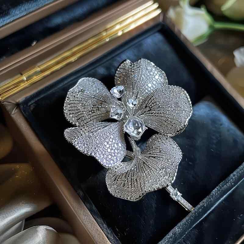 ブローチ レディース 蝶々 花 フラワーモチーフ 高級感 ジルコニア 煌めき 銅製 電気メッキ加工 チャイナドレス アクセサリー 和装 洋装 エレガント 結婚式 パーティー プレゼント