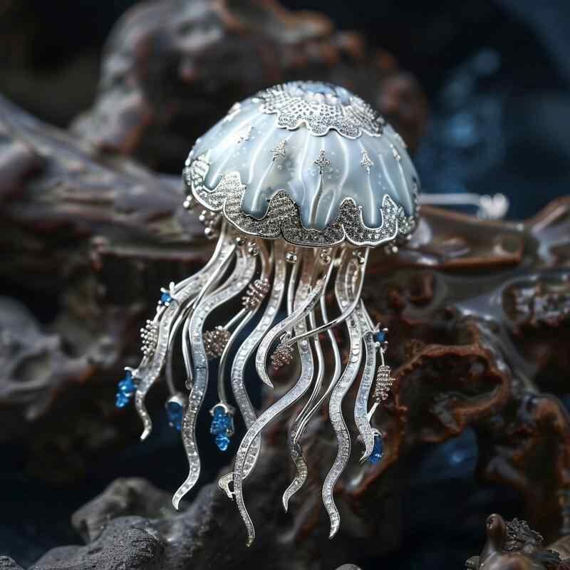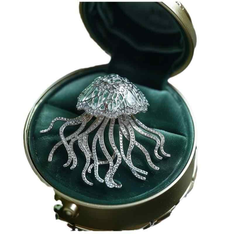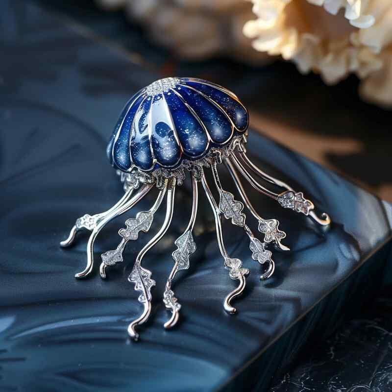 ブローチ レディース クラゲモチーフ エレガント 高級感 躍動感 深海生物 七宝焼き エナメル ジュエリー アクセサリー 銅合金 電気メッキ加工