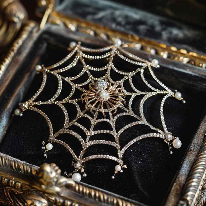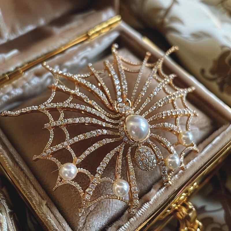 ブローチ レディース 故宮博物館所蔵品モチーフ 蜘蛛の巣 スパイダーウェブデザイン 高級感 ヴィンテージ調 アクセサリー 銅製 電気メッキ加工 レトロ クラシック ファッション小物 ギフト プレゼント 普段使い