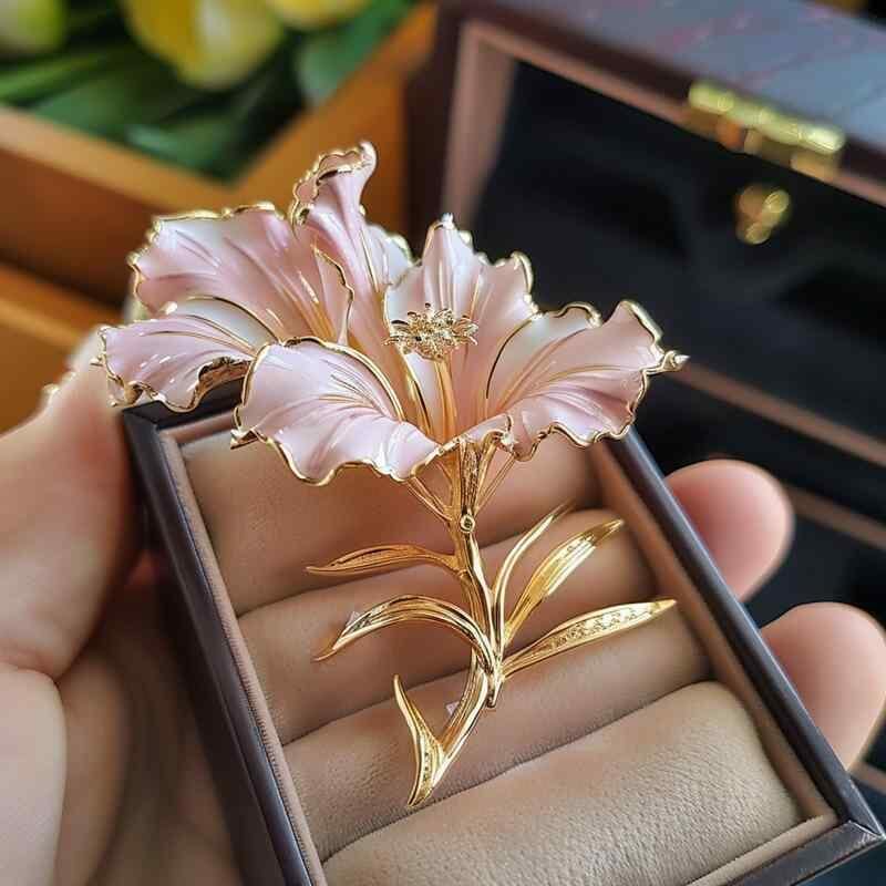 ブローチ レディース オリジナルデザイン 剣蘭 フラワーモチーフ 高級感 エナメル ピンブローチ 銅製 電気メッキ加工 秋 フォーマル パーティー プレゼント ギフト