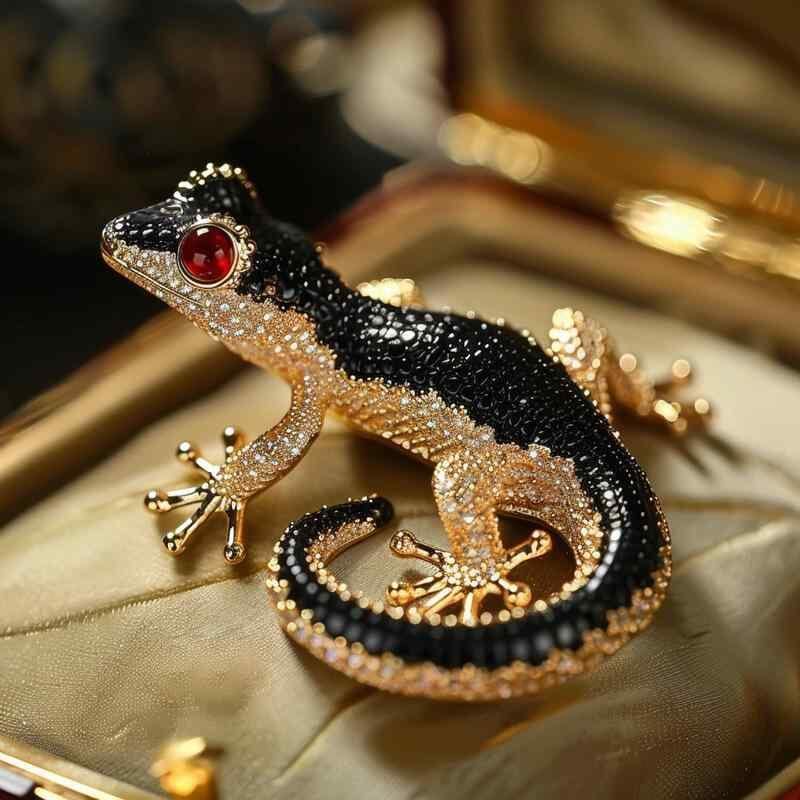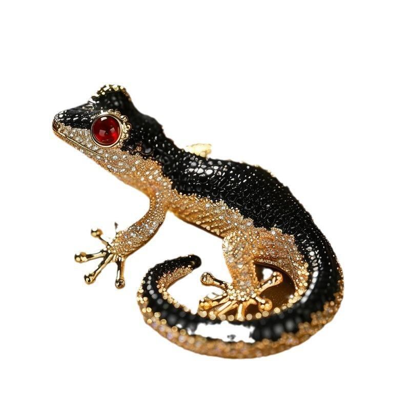 ブローチ レディース ゲッコー アニマルモチーフ ブラック ゴールド エナメル ジルコニア 銅製 電気メッキ加工 高級感 上品 オリジナルデザイン ピンバッジ コサージュ フォーマル カジュアル パーティー ギフト プレゼント