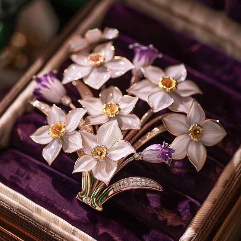 ブローチ レディース 高級感 エナメル 黄水仙 フラワー 誕生日花 銅製 電気メッキ加工 オリジナルデザイン 秋冬 記念 装飾